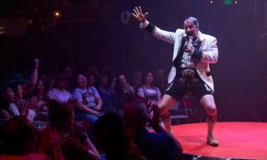 The Gazillionaire, “Absinthe’s” irreverent host, showed up late that morning, grabbed a glass of Champagne and leveled the place, starting with Spiegelworld founder Ross Mollison. “Sorry, I was sleeping in the car,” said Gaz, wearing a gold-sequined jacket, his hair matted with what seemed to be lard.