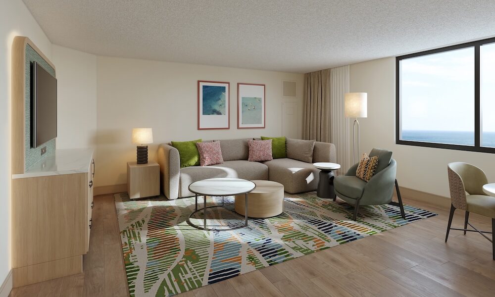 The project drew design inspiration from Tropicana’s Palm Walk. It includes tropical decor and coastal views.