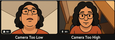 A common problem is that laptop users set their units on a desk and look down. That means the viewer is looking up at you. That’s never your best angle.