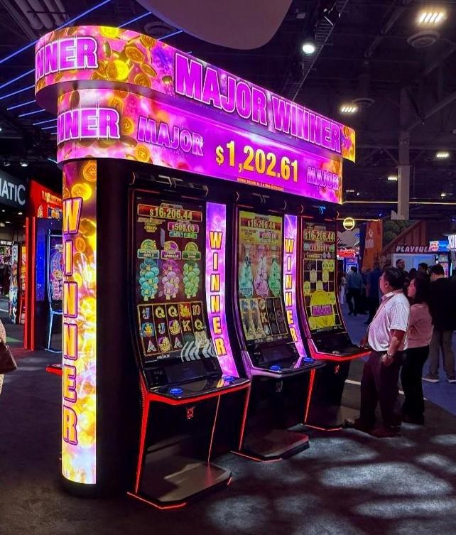 - Konami floated an idea to show past slot jackpots on an attached LED screen. This is a great idea to let players know that dozens and dozens of the machines do pay off. It used display technology to solve the ancient problem of how to celebrate winners.