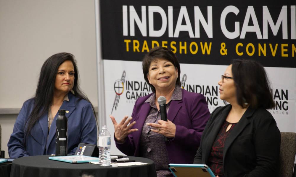 During the session “Transformative Tribal Trailblazers – Their Insights and Strategies to Rise to the Top” at the Indian Gaming Association Tradeshow & Conference in Anaheim, California, Bryan recalled being so poor she had her teeth cleaned in an Airstream that visited the Poarch Band of Creek Indians grounds in Alabama. Bryan was so shy that when she won an award, she asked her sister to accept it. And after she became the vice chair of the tribe, by a coin flip, and eventually tribal chair, she was served papers by Alabama’s attorney general challenging the Poarch Band’s sovereignty.